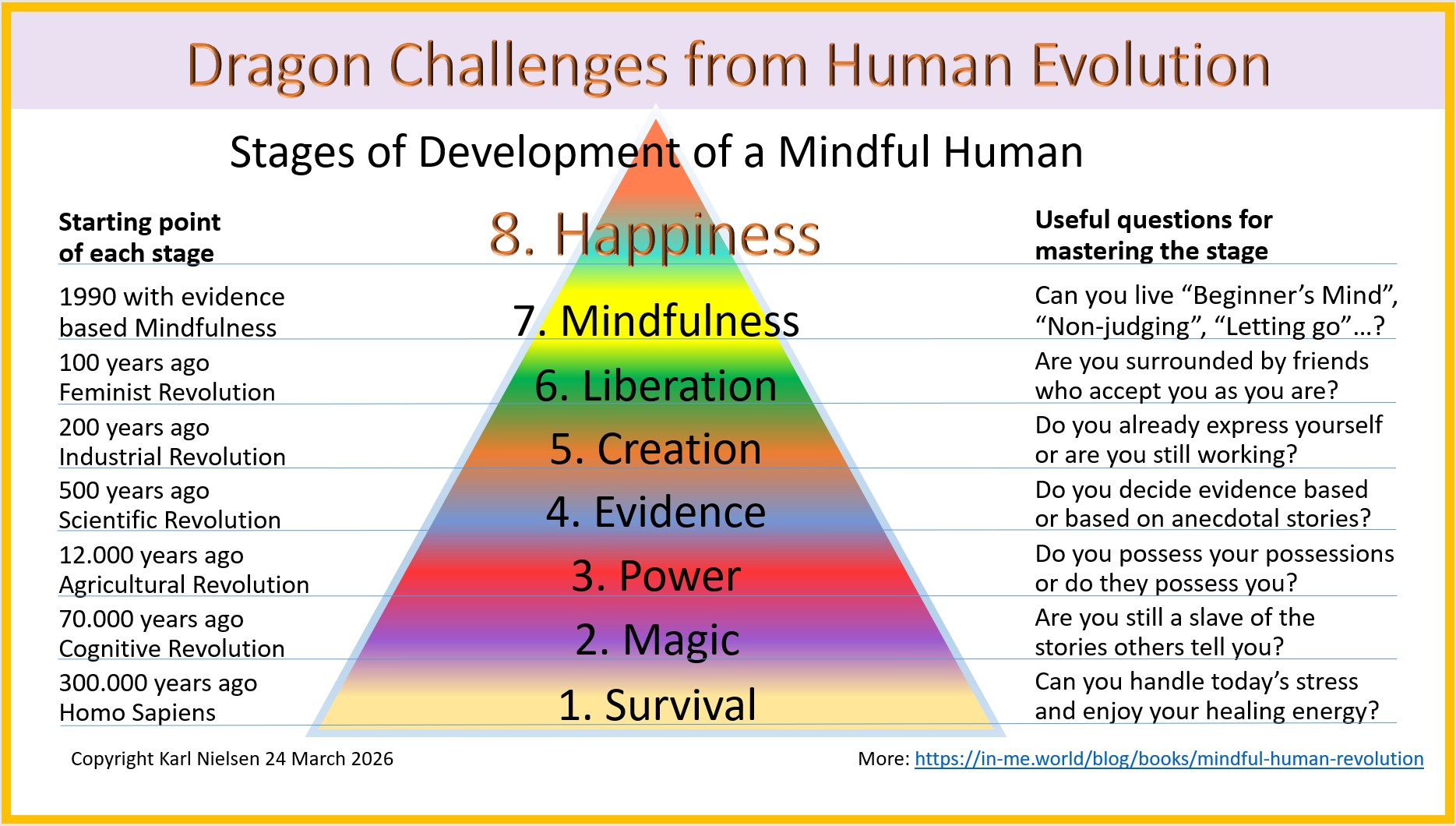 This book and the associated trainings are inspired by Prof. Dr. Jon Kabat-Zinn's Mindfulness (MBSR), Prof. Dr. Yuval Harari's revolutionary scientific historical facts, NLP, Coaching and Hypnosis. It is published on Amazon: Kindle E-Book